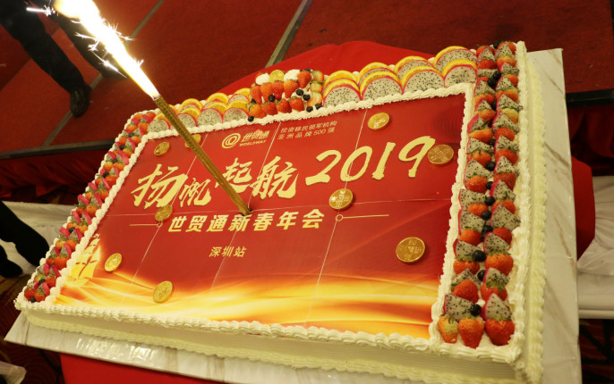 在新春晚宴上,全体员工为新的一年集体许愿,举杯同庆,共同祝愿世贸通的明天会更好!22周年庆的生日蛋糕,象征着世贸通的事业蒸蒸日上,再次将年会的气氛推向高潮!世贸通集团各地公司为大家送上了新春祝福,同时感谢员工们以及员工家人们的努力与支持,并祝福期待2019年再创佳绩!