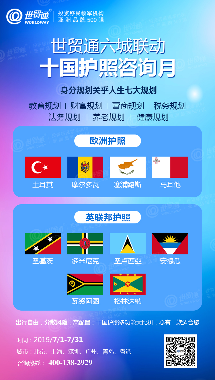 世贸通十国护照咨询月活动火爆进行中,惊喜多多,不容错过!与此同时,世贸通还可提供更多种选择,在“身份规划”的路上,为您提供特色化、个性化、精细化的优质服务。如您有意向移民海外,办理第二国护照,请尽快联系世贸通集团。详情请咨询:400-138-2929
