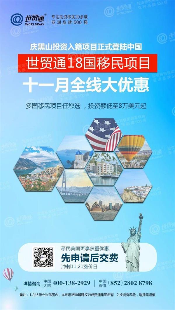 目前正值世贸通18国移民项目十一月全线大优惠活动!活动期间,优惠多多,惊喜多多,欢迎广大新老客户积极参与,把握机会!更多详情请咨询:400-138-2929。