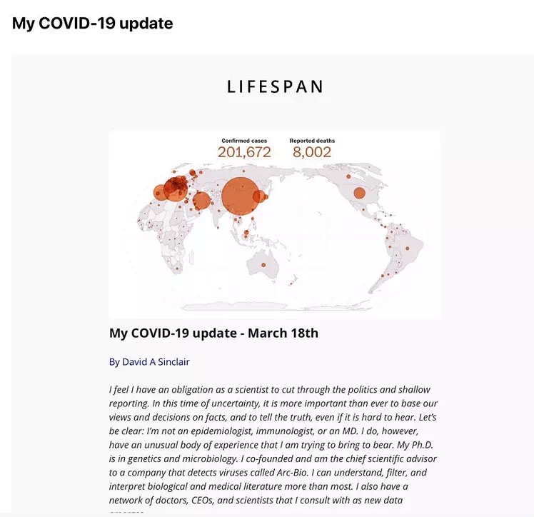 3月18日 ,世界知名学者哈佛教授David A Sinclair 博士就COVID-19在全球的流行撰文,并私信发给了世贸通集团董事长、世贸通财富俱乐部执行主席Winner Xing博士。现由世贸通财富俱乐部秘书处翻译成中文,以飨各位会员和中文读者。