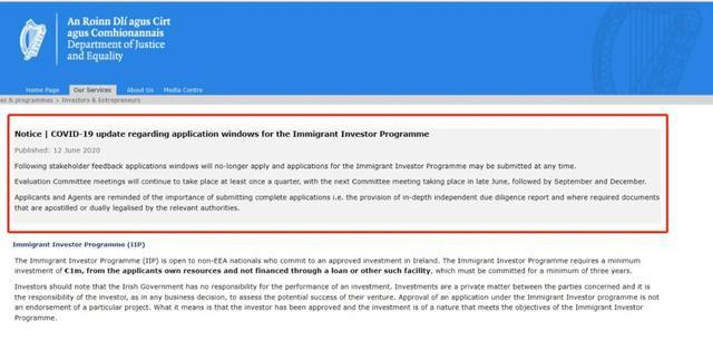 重磅好消息:近日,爱尔兰移民司法部宣布取消2020年爱尔兰投资居留计划(IIP)的递交窗口期限制!从6月12日起,申请人可以随时递交申请。