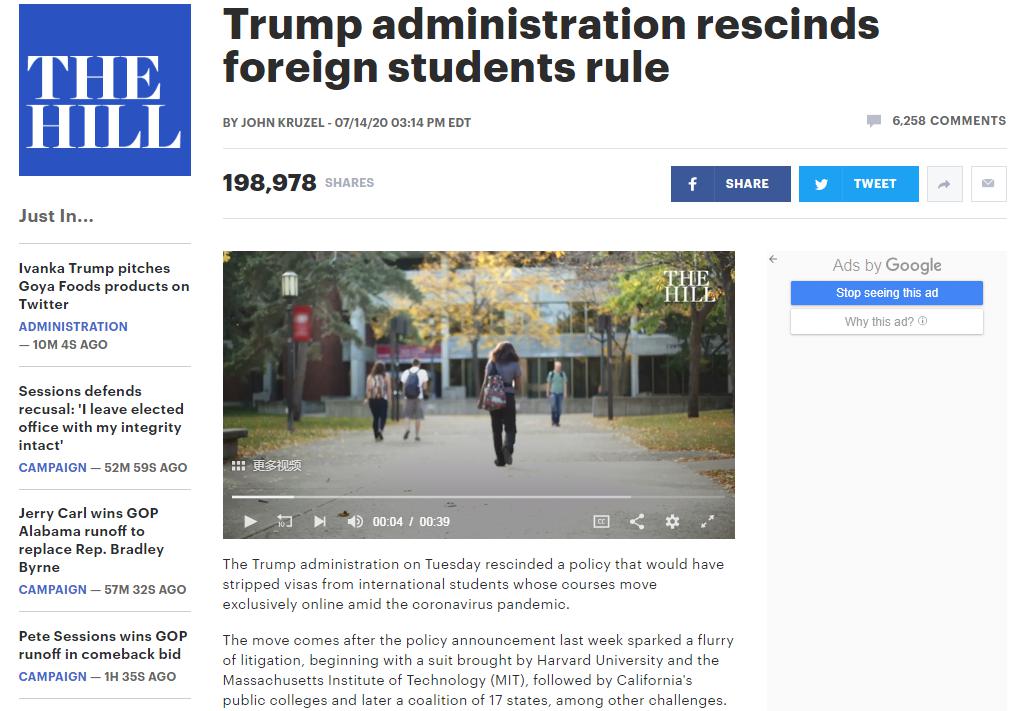 美国国会山最新消息:川普政府同意撤销此前由美国移民与海关执法局(ICE)发布的国际留学生秋季开学新规,即禁止国际学生秋季在美国全程上网课;将继续沿用ICE在3月份新冠疫情开始时实施的就读政策,即允许国际学生在疫情期间参加网络课程而不算违背相关移民法规。这对于广大留学生而言,可谓是一大好消息。