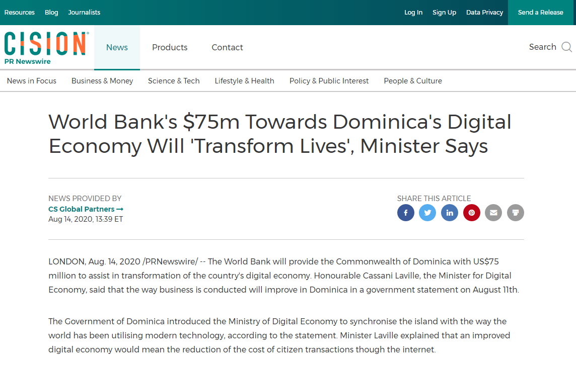 近日,多米尼克政府的一份声明称:世界银行将向多米尼克提供7500万美金资金,以帮助实现数字经济转型,多米尼克的业务开展方式将得到改善!