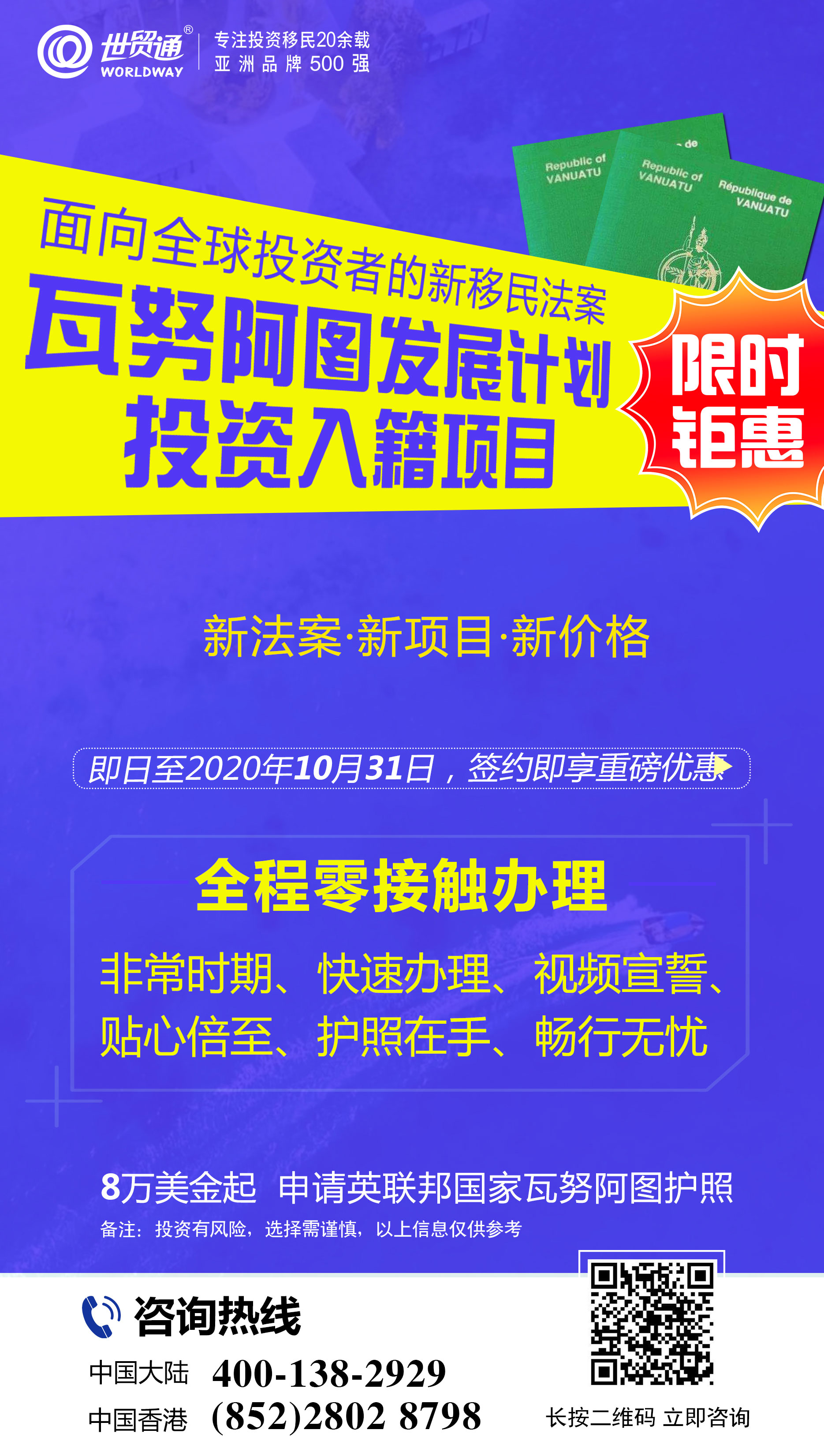 2020健康规划年!健康规划,身份先行!办理英联邦国家投资入籍项目,详情请咨询世贸通服务热线,中国大陆:400-138-2929 中国香港:(852) 2802 8798。