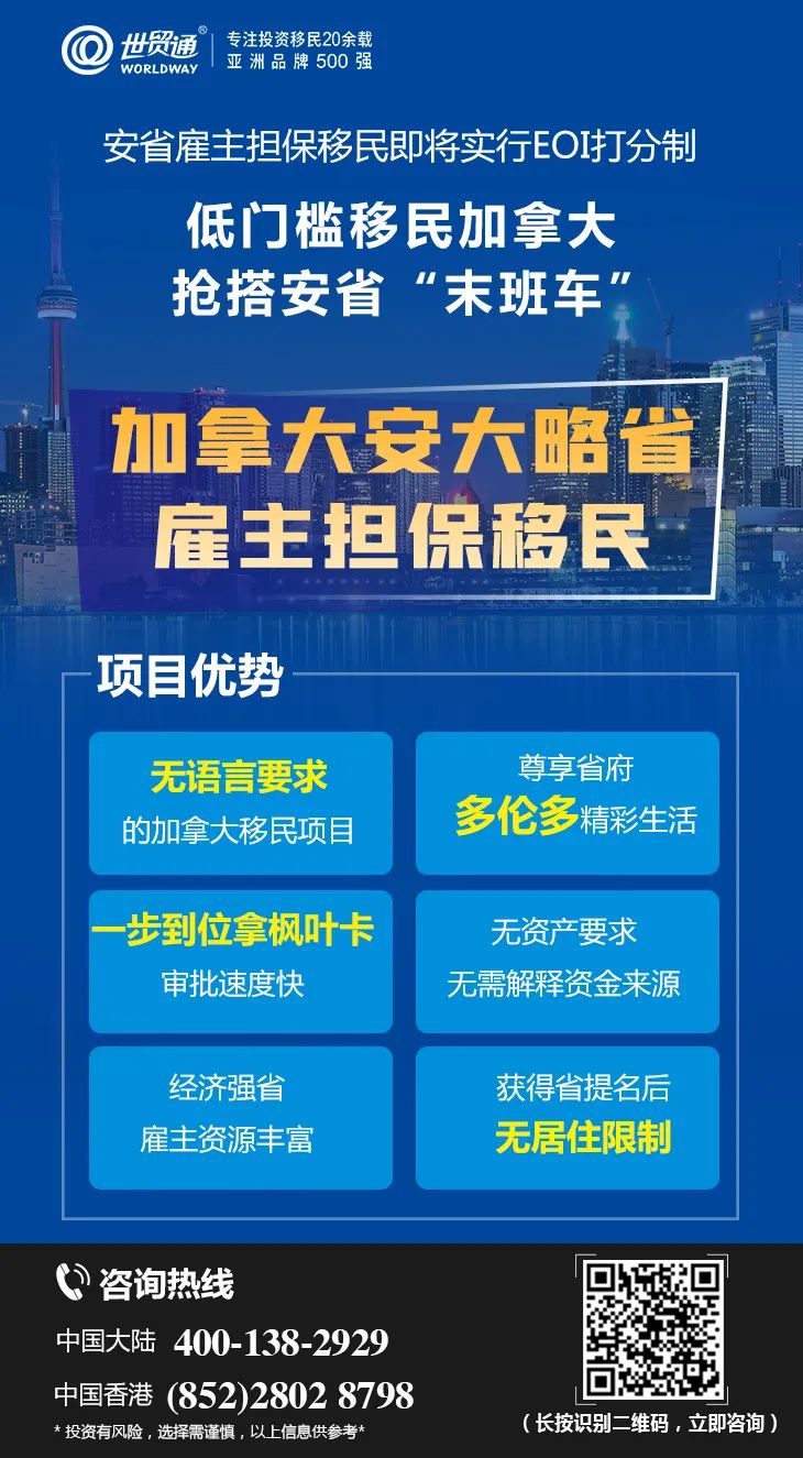 作为加拿大无需硬性雅思成绩、无打分要求、一步到位拿枫叶卡的安省雇主担保移民,深受移民投资者的青睐,是投资者移民加拿大的热门选择。值得注意的是,由于此项目太过火爆,所以配额及其抢手。2019年以来,安省雇主担保移民项目历次开门,几十分钟内即宣告配额告罄。2021年安省雇主担保移民将实行EOI打分制,抢搭免雅思移民加拿大安省“末班车”,刻不容缓!从现在起,符合条件的申请人须赶紧行动,着手准备相关材料,早准备,才能在“开门”的第一时间抢占稀缺名额!