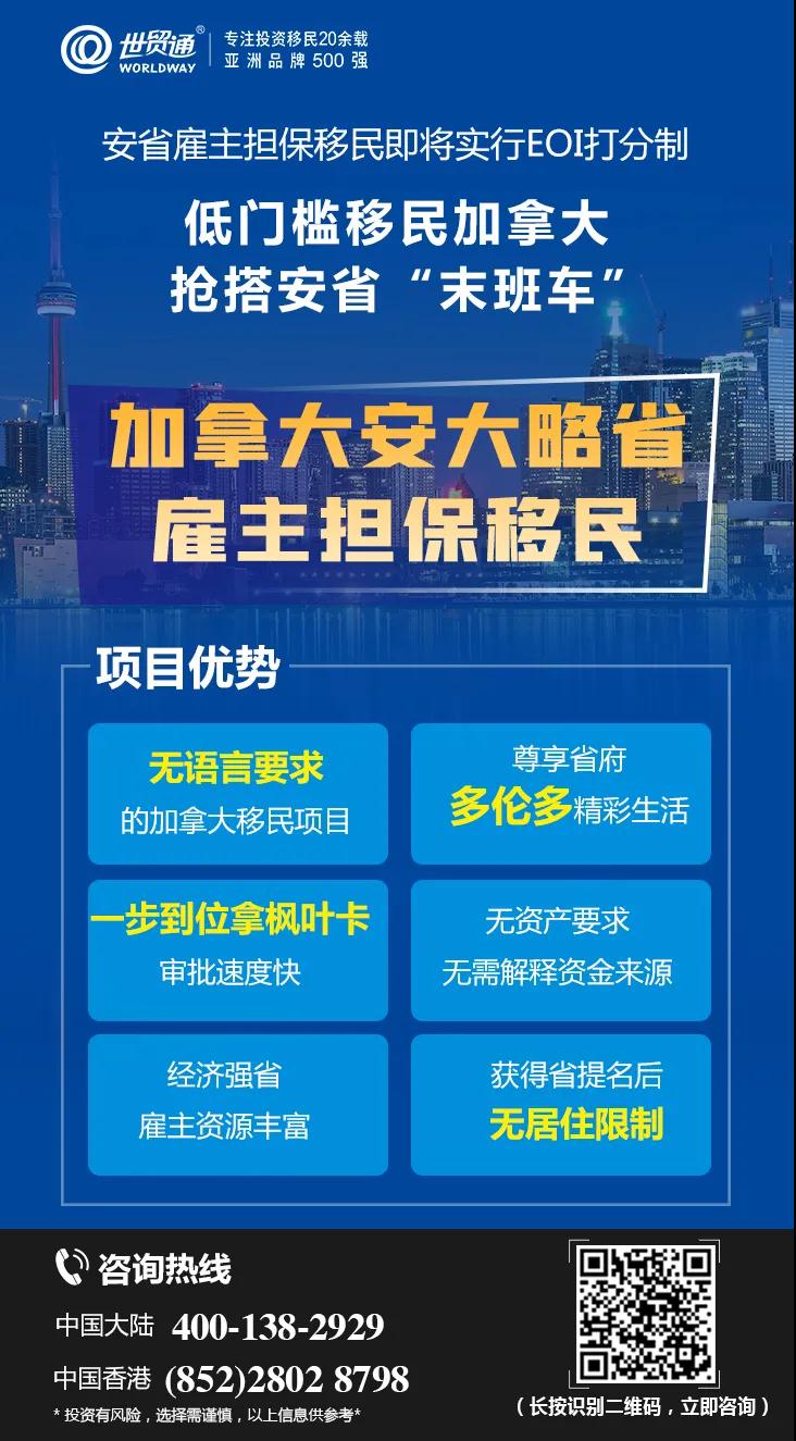 此外,作为加拿大无需硬性雅思成绩、无打分要求、一步到位拿枫叶卡的安省雇主担保移民,也深受有意向移民加拿大投资者的青睐。2021年安省雇主担保移民将实行EOI打分制,抢搭免雅思移民加拿大安省“末班车”,刻不容缓!从现在起,符合条件的申请人须赶紧行动,着手准备相关材料,早准备,才能在“开门”的第一时间抢占稀缺名额!