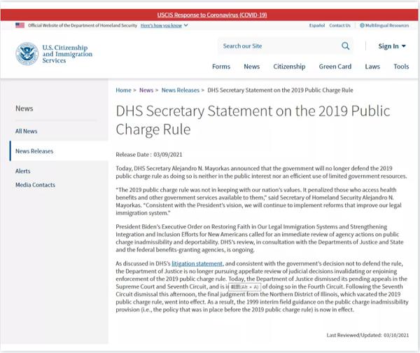 近日,美国国土安全部部长Alejandro N. Mayorkas宣布,政府将不再继续推行川普的公共负担新规,因为这样做既不符合公共利益,也不能有效利用有限的政府资源。也就是说,此前令众多申请人头疼的2019年版“公共负担”新规正式撤销。