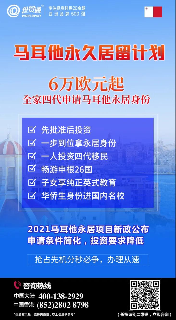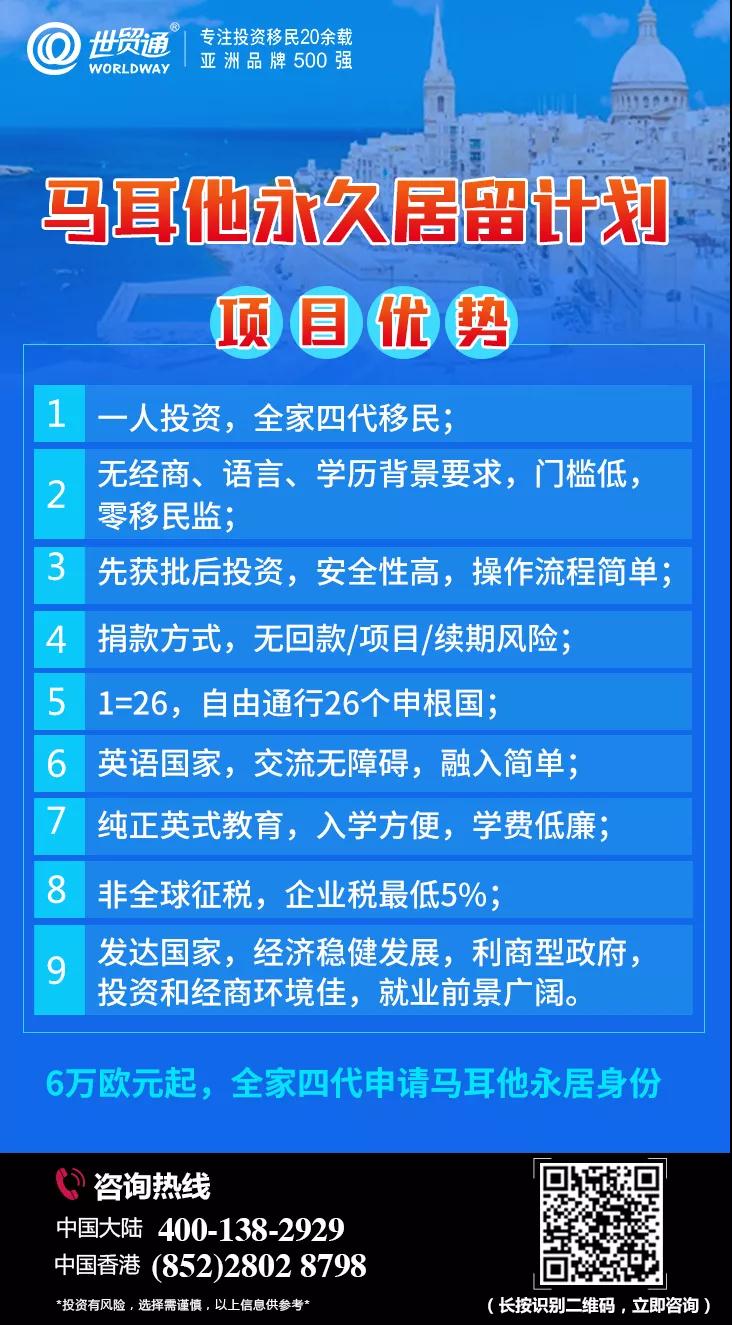 亚洲品牌500强世贸通集团,专注投资移民20余载,作为欧洲投资移民项目的积极推动者,多年来一直与马耳他政府保持良好互动,是您办理马耳他移民的上佳之选。更多详情,请拨打世贸通服务热线,中国大陆:400-138-2929 中国香港:(852) 2802 8798。