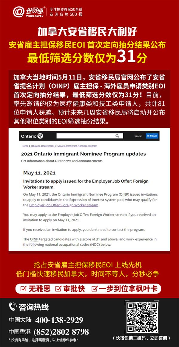 安省雇主担保移民EOI首次定向抽分结果公布