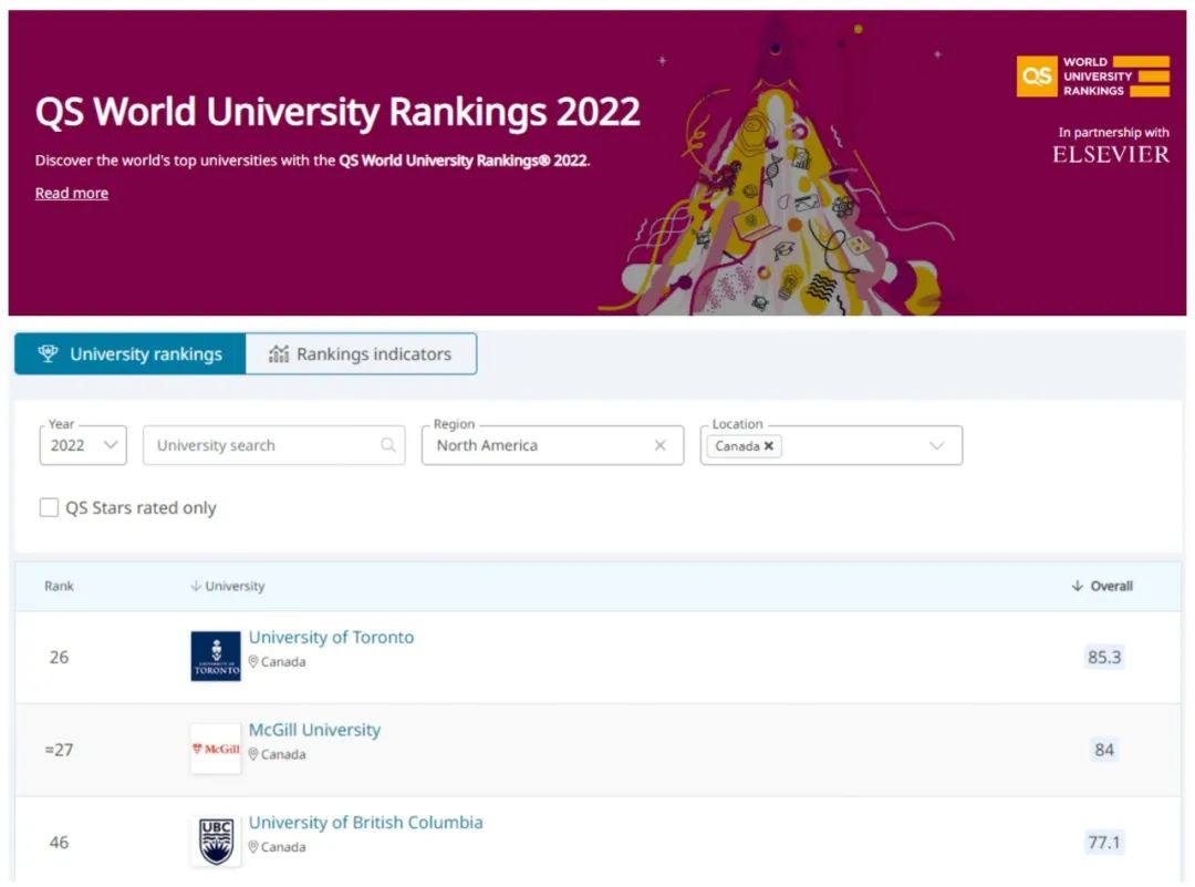 实际上,此次跻身“全球前20名最佳留学城市”的加拿大3座城市,坐拥加拿大知名的三所大学:多伦多大学、不列颠哥伦比亚大学、麦吉尔大学。无论是QS排名还是其他排名,这3所高校都名列前茅。在此前QS发布的《2022世界大学排名》榜单中,多伦多大学位列全球第26,加拿大第1;麦吉尔大学位列全球第27,加拿大第2;不列颠哥伦比亚大学位列全球第46,加拿大第3。