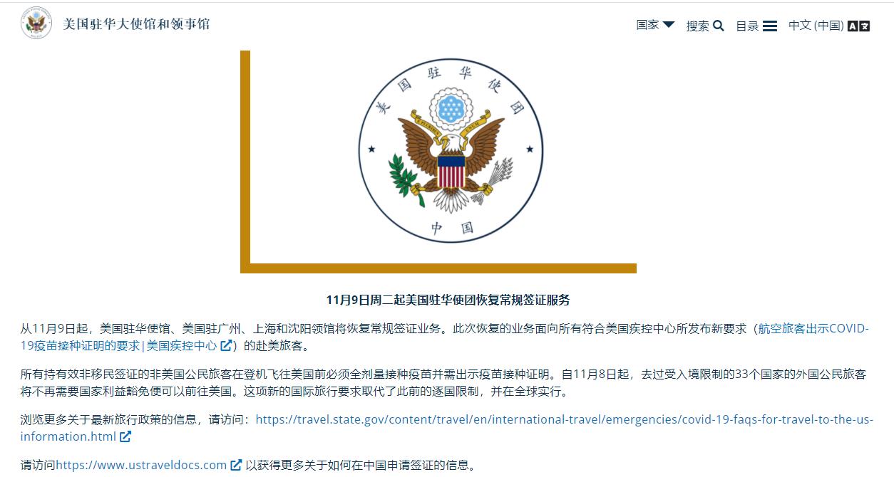 好消息:美国旅行禁令解除&美驻华常规签证恢复