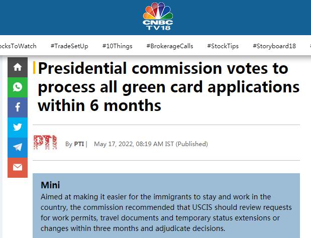近日,根据CNBC 报道,美国总统顾问委员会一致投票建议拜登总统要求移民局在六个月内处理所有绿卡或永久居留权的申请。