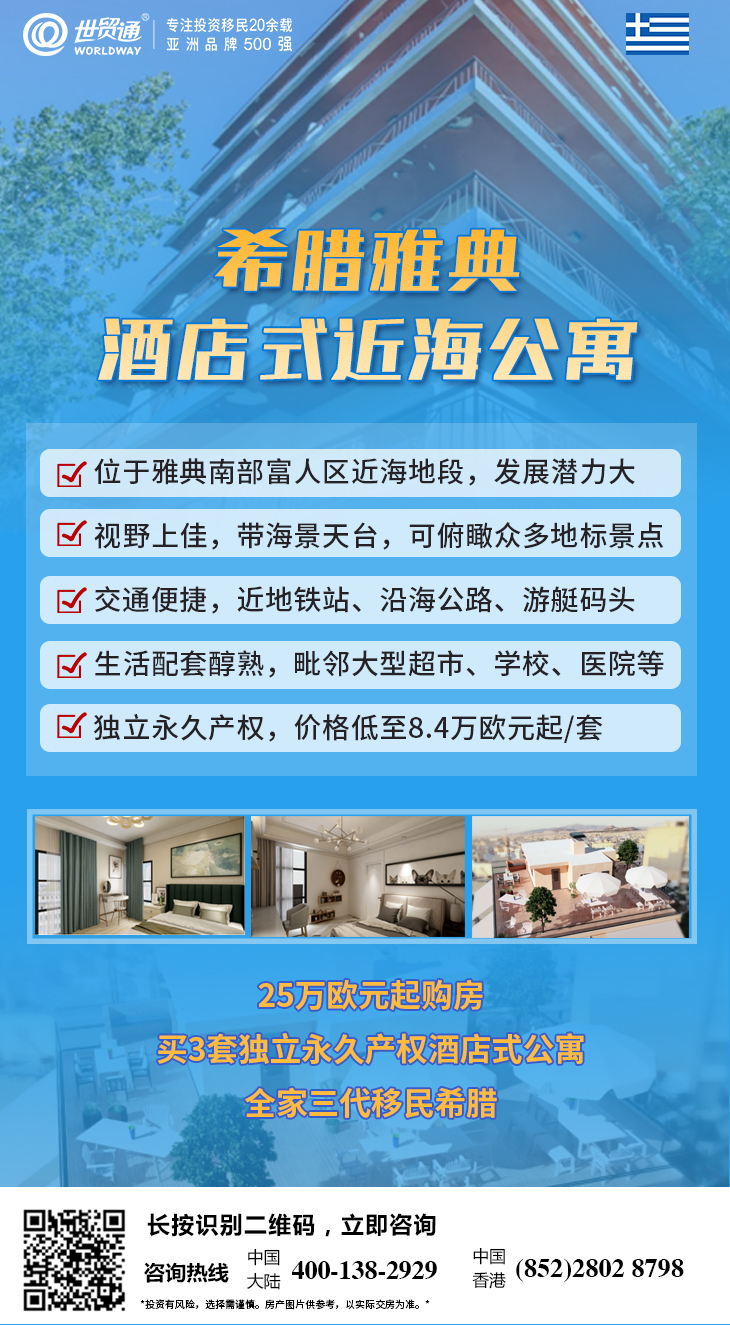 同时,世贸通还携手希腊实力开发商向投资者推介多种优质房源,如希腊米克诺斯岛花园洋房、雅典海滨公寓等,满足不同投资者的需求。选择比努力重要,一份投资多重收获,现在正值希腊买房移民优惠期,机会难得,购房即可获大礼包,有意者须及时把握好时机!
