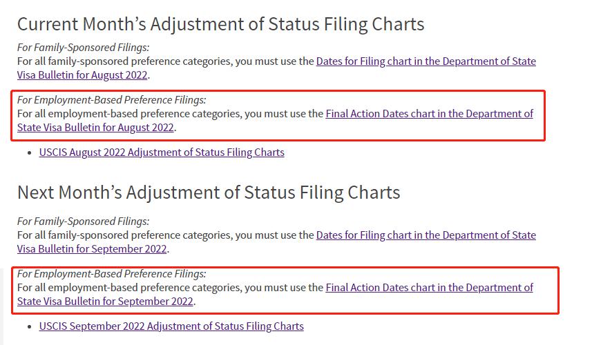 此外,值得注意的是,截止发稿日美国移民局9月份针对职业类别Employment-Based Preference Filings暂不启用B表。后续以官网为准。