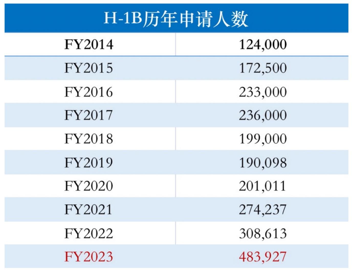事实上,近年来,美国移民局收到的H1B申请数量就一直直线攀升。今年483,927份网上电子注册数量创造出了H-1B申请历史上的最高纪录,在2014财年的基础上翻了近四倍。