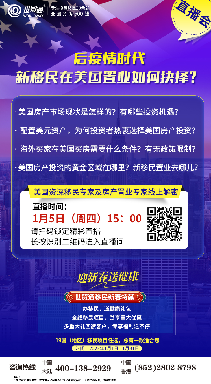 2022年,世贸通将持续举办多场直播活动,让您足不出户及时了解移民政策、海外投资、移民后的注意事项等资讯,敬请持续关注及参与!