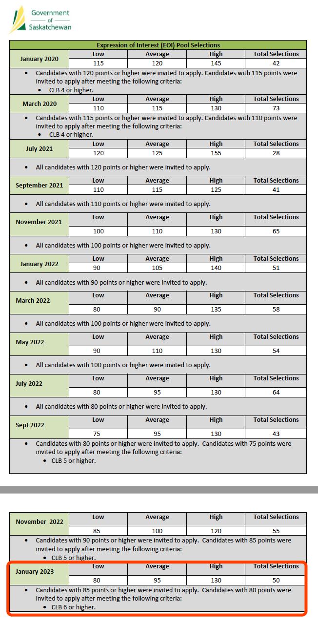 当地时间2023年1月5日,加拿大萨省移民局在就企业家移民类别进行了2023年的第一次筛选,本次筛选人数为50人,筛选分数仍然保持较低分,最低分仅为80分!