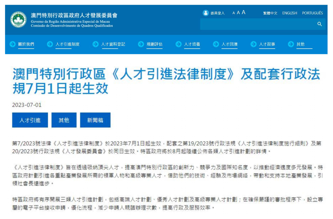 重磅好消息!澳门特区政府2023年7月1日宣布,澳门《人才引进制度法律》正式生效!这是继澳门移民通道于2007年关闭后,时隔16年重启,并且明确通过澳门人才引进计划可以申请澳门身份的法案通道。