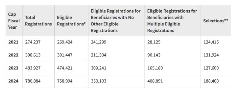 2024财年移民局收到的有效注册为758,994份,减去第一轮已抽中的110,791份,还有648,203可供第二轮抽签。