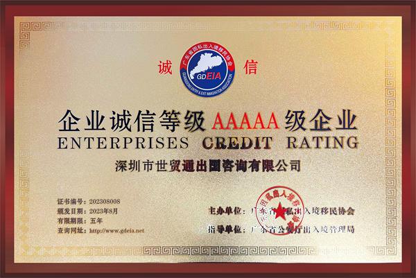 近日,在2023年因私出入境移民行业交流会暨广东省移民协会表彰盛典中,世贸通公司凭借为客户服务的卓越口碑、专业能力,成功荣获“企业诚信等级5A级企业及优秀单位”大奖!在众多荣誉中又添上了浓墨重彩的一笔。
