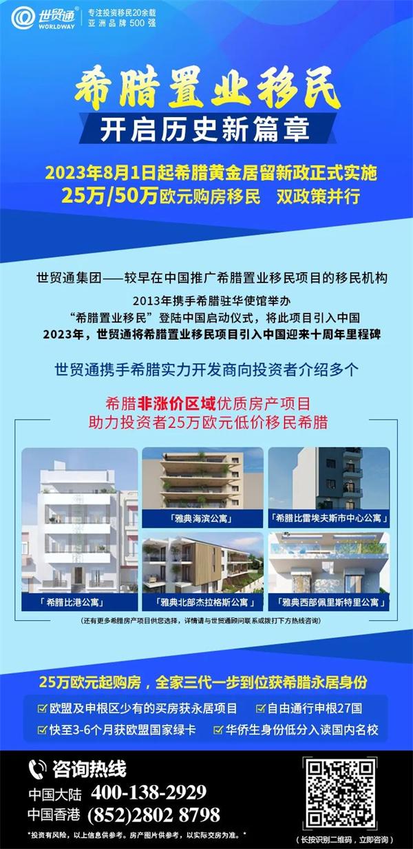 希腊购房移民涨价后,非涨价区房产可能成为香饽饽。世贸通携手希腊实力开发商向投资者推介多种房源,均是位于非涨价区域内比港的优质房产,如希腊比港公寓、雅典海滨公寓公寓等,满足不同投资者的需求。有意向移民希腊的人士,可尽快与世贸通联系,优质房源紧俏。