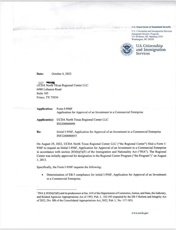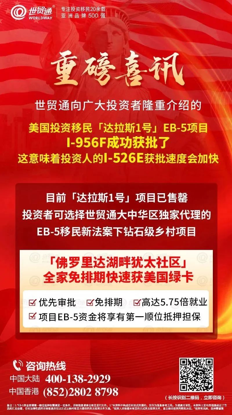 重大好消息!世贸通向广大投资者介绍的,美国投资移民「达拉斯1号」EB-5项目的I-956F获批了!