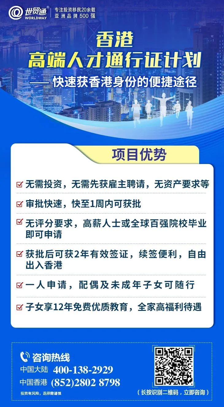 移民香港,世贸通值得您选择。更多详情,请在评论区私信我们,或拨打世贸通服务热线,中国大陆:400-138-2929 ,中国香港:(852)2802 8798
