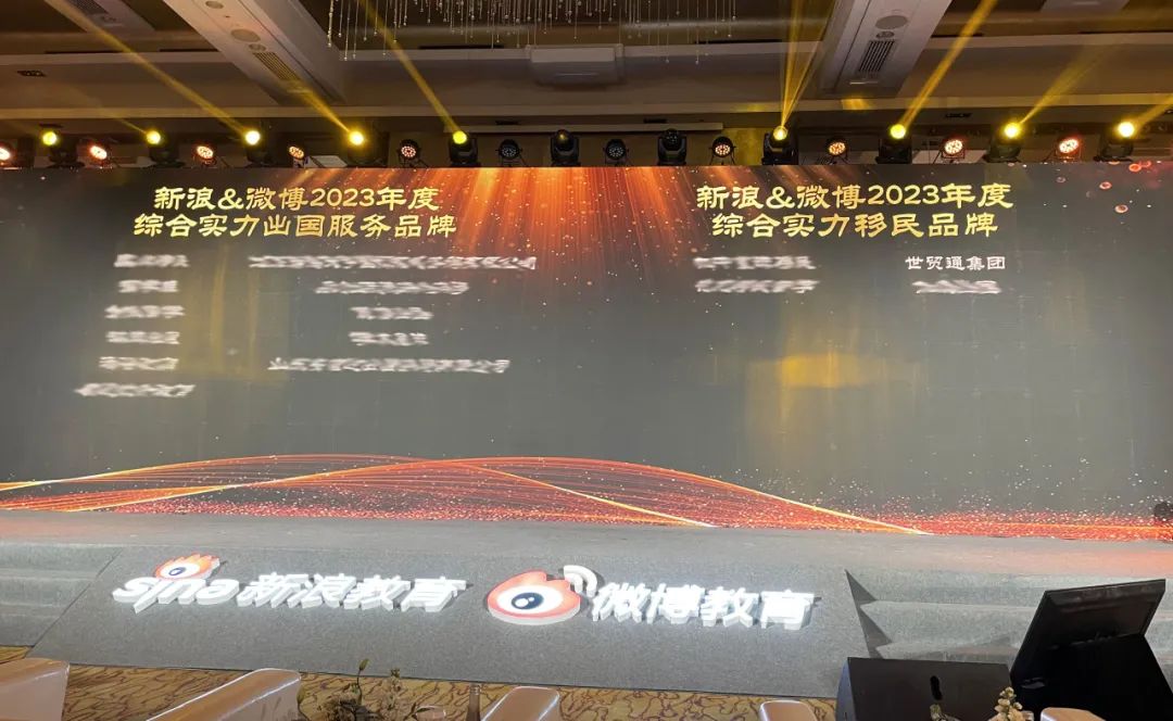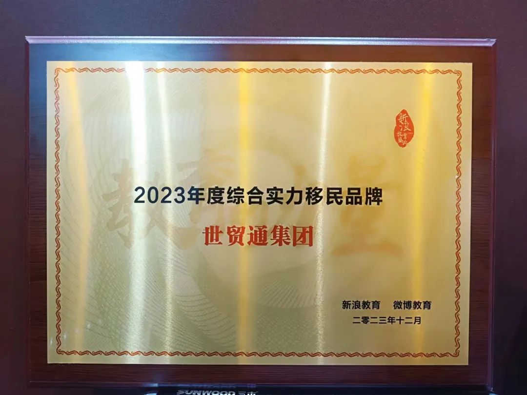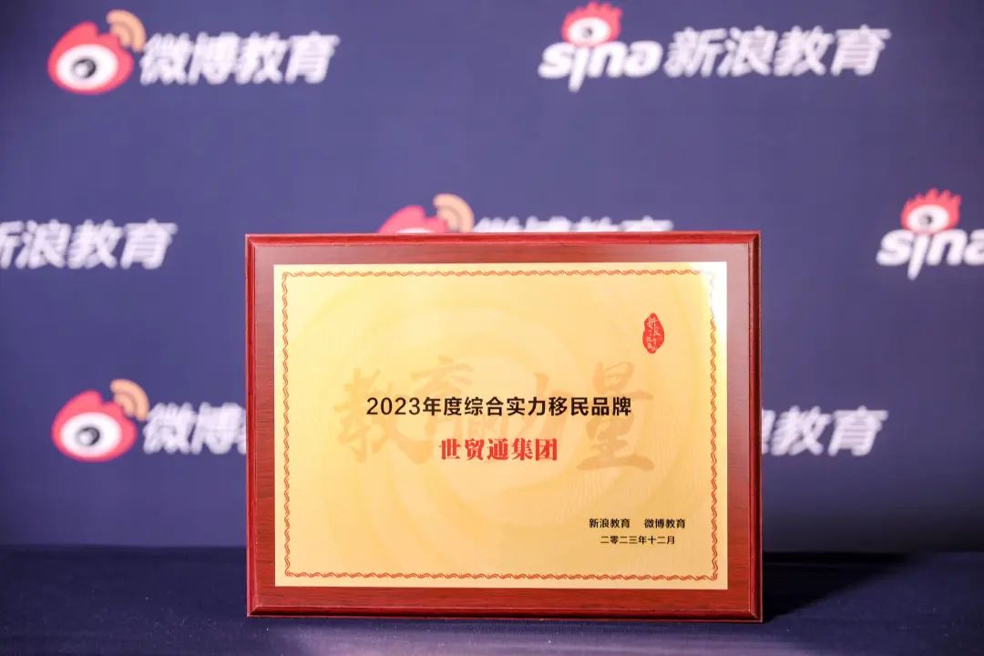近日,在新浪&微博2023教育盛典中,世贸通集团凭借为客户服务的卓越口碑、专业的实力,荣获“2023年度综合实力移民品牌”大奖。