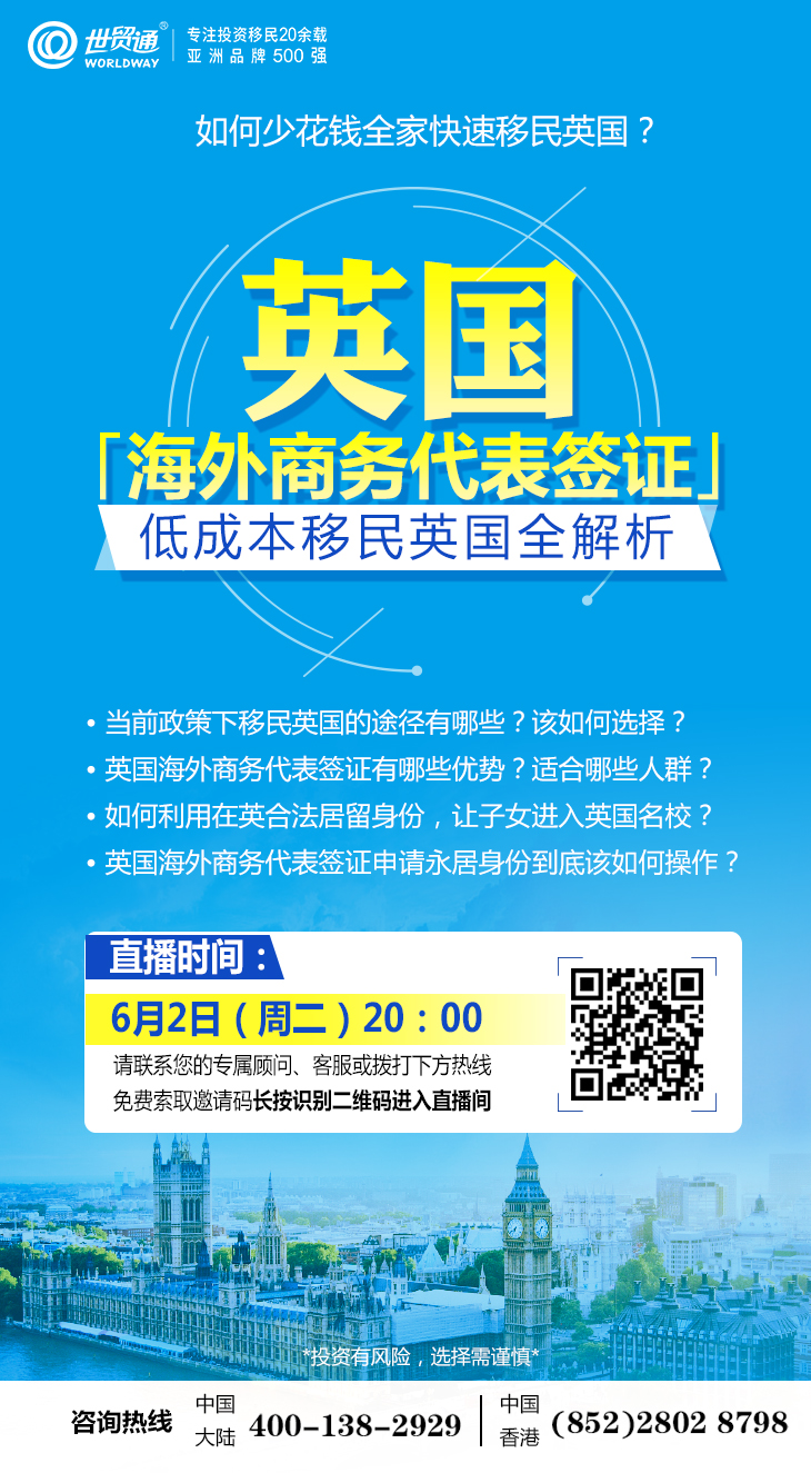 作为低成本通往英国的一种快捷途径,英国海外商务代表签证不仅申请条件简单,而通过率相对较高,可以说是为高净值人群进入英国开辟了绿色通道!对移民投资者而言,市场瞬息万变,需把握当前英国移民政策便利,提早多规划一个身份,未来就多一份选择!