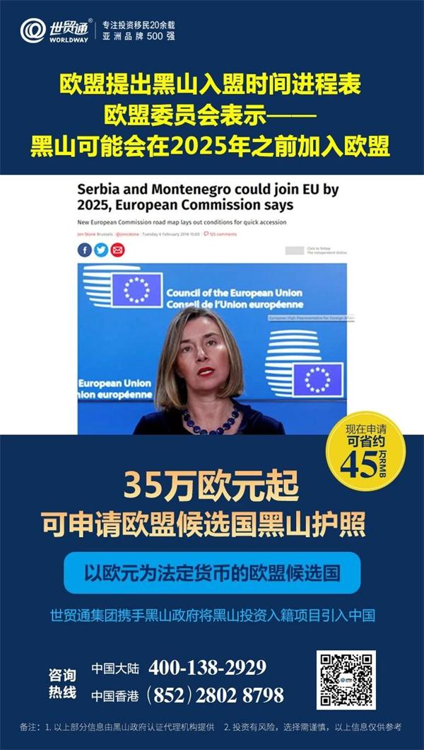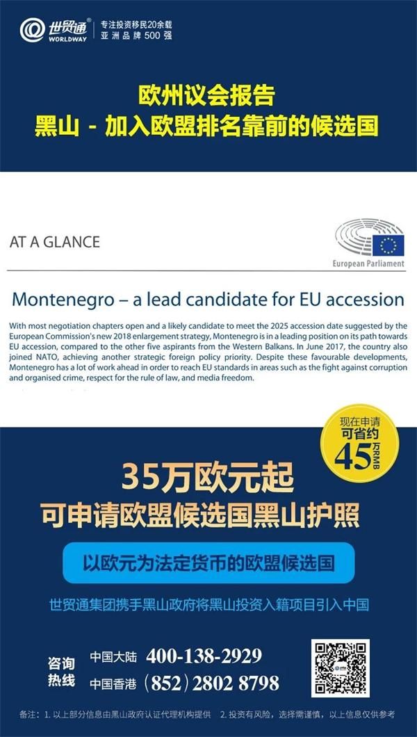 亚洲品牌500强世贸通集团,作为欧洲投资移民引入者,与黑山政府友好往来、保持长久互动及合作,是您办理黑山护照的上佳之选!