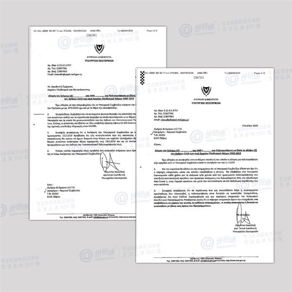 喜讯又来:世贸通一批塞浦路斯客户成功获批