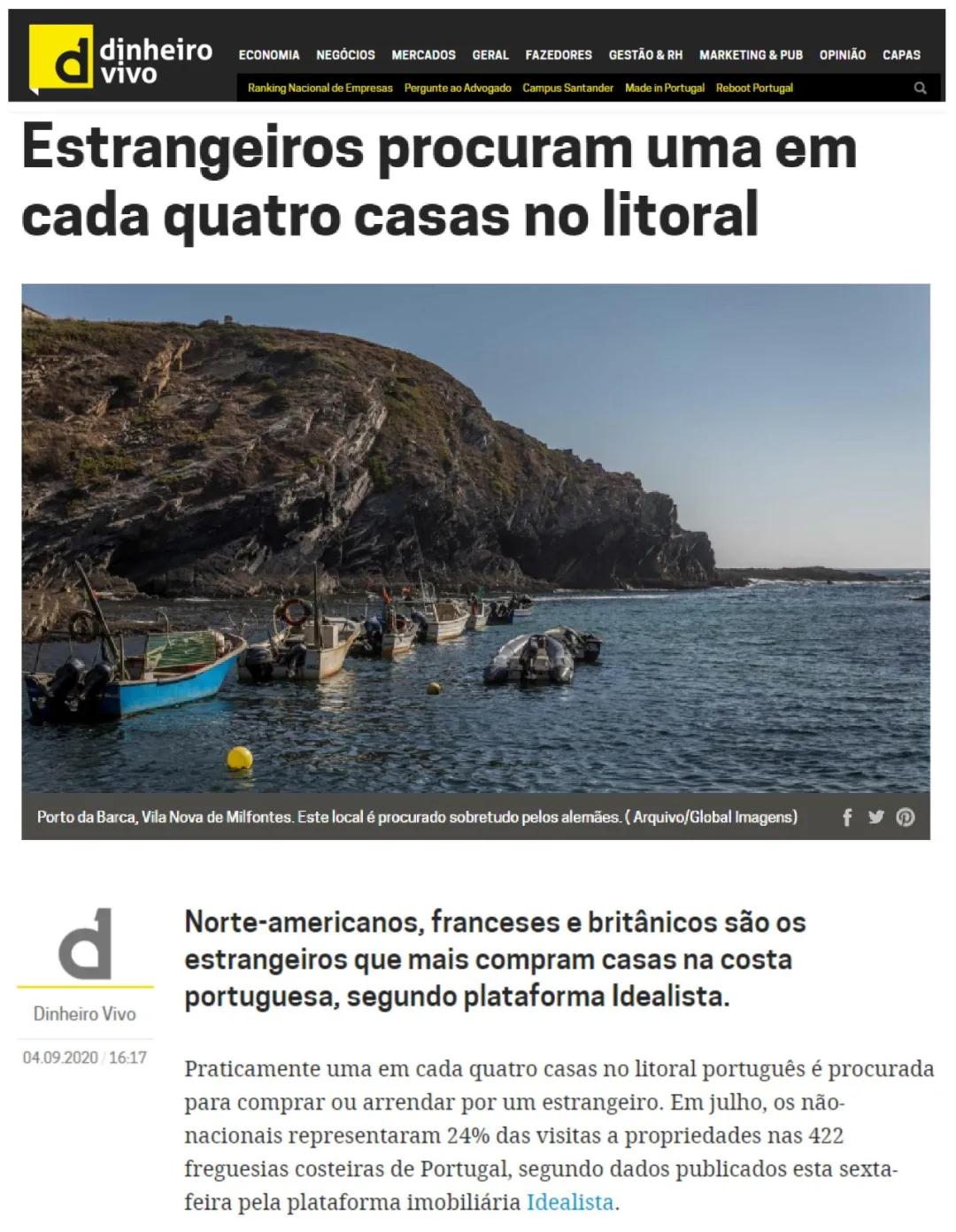 根据葡华报综合报道,葡萄牙几乎四分之一的沿海房产物业被外国人购买或租用。根据Idealista房地产平台上发布的数据显示,7月份,非葡萄牙公民投资占葡萄牙422个沿海郊区房地产投资的24%。