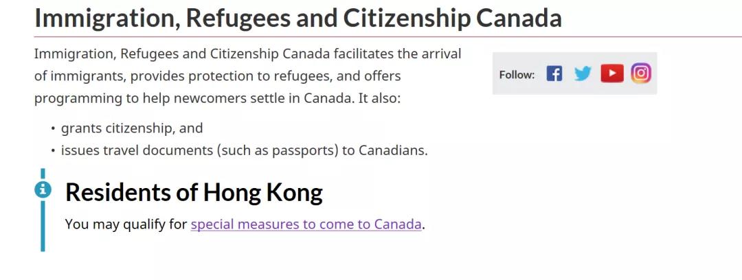 加拿大移民局表示: 加拿大一直是欢迎移民的国家,此次针对中国香港的年轻人,为他们提供了更多移民加拿大的机会与方式,这将吸引中国香港本地与加拿大本地的香港学生和年轻人。该计划将通过提供新的开放签证,并在未来帮助中国香港申请人获得永久居留权。