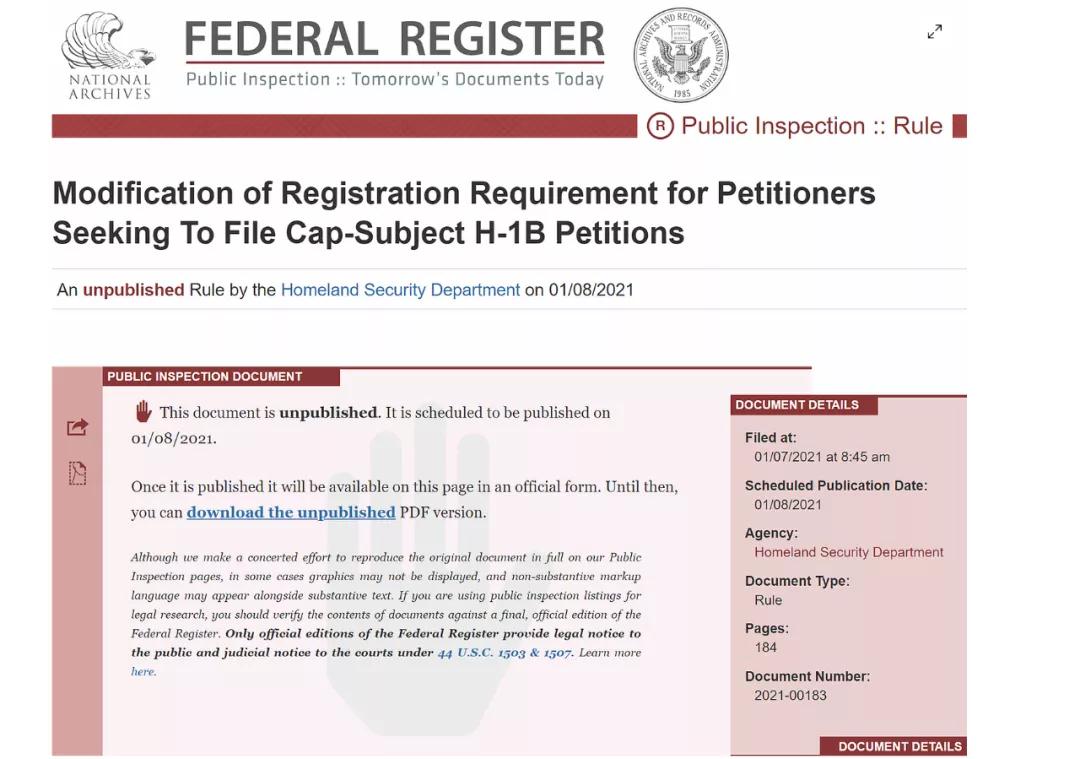 美国当地时间1月8日,美国国土安全部(DHS)颁布了H1B工作签证新规:将取消现有的抽签制度,用基于工资水平的甄选程序来代替,优先考虑高薪申请人。新规将在联邦公报发布后60天生效。
