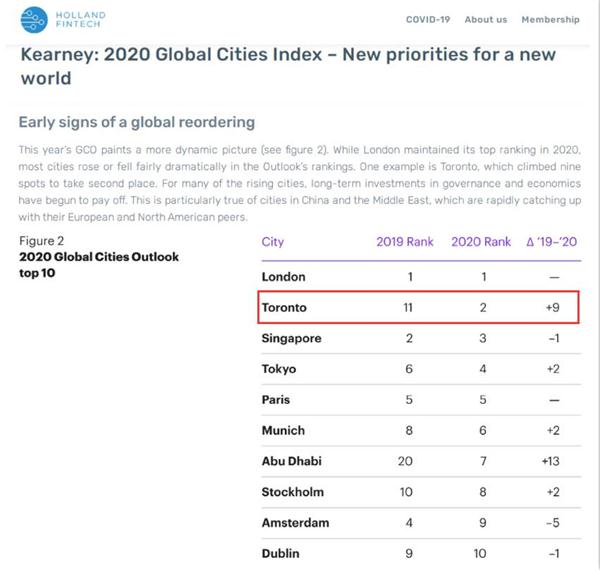 近日,国际管理咨询公司Kearney发布了2020年全球城市指数排名,揭晓全球最具发展潜力的城市和全球最具竞争力的城市。加拿大安大略省的多伦多市从全球151个大城市之中脱颖而出,成功拿下了全球最具发展潜力城市排名第二名,仅次于英国伦敦!