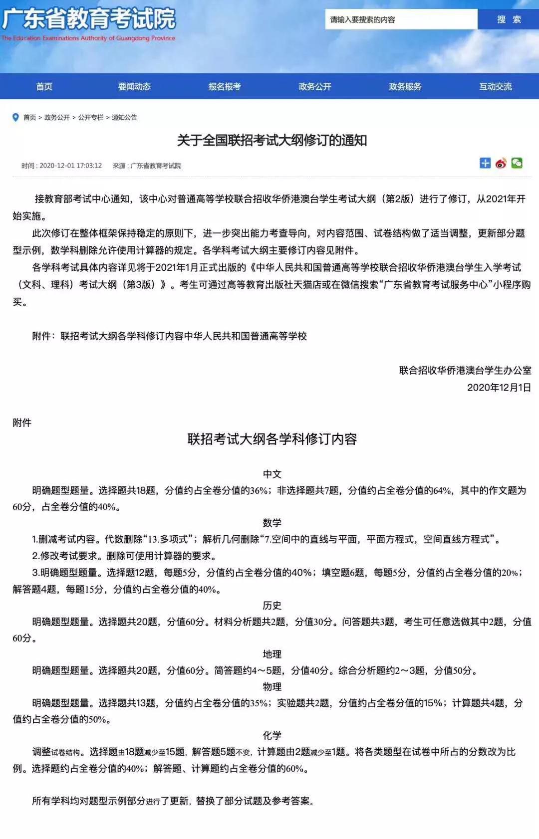 并且,根据此前广东省考试院发布的《关于全国联招考试大纲修订的通知》,今年的华侨生联考将迎来多重利好,如数学科目删减考试内容、增大各科目选择题分值从而降低考试难度等,这意味着,今年的华侨生联考比以前更简单了!