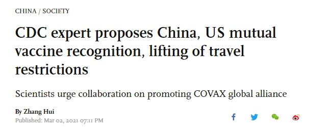 吴尊友表示,美国计划今年6月完成80%人口接种疫苗,到8月达到 90%,预计就能实现群体免疫。如果能消除政治阻碍,仅就科学而言,中美可能是最早解除旅行限制的国家。