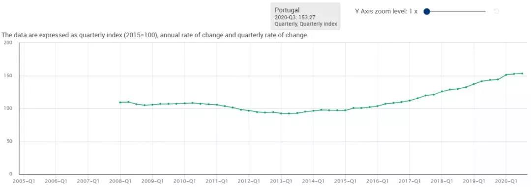不仅房租上涨,葡萄牙的房价也在上涨。据欧盟统计局的数据显示,尽管去年受疫情影响,葡萄牙的房价依旧稳步上升,截至去年第三季度,葡萄牙房价走势创近十年来新高。另外,相较于去年同期,葡萄牙2020年前三季度的房价涨幅分比为10.3%、7.8%和7.1%,远超欧盟同期房价涨幅。