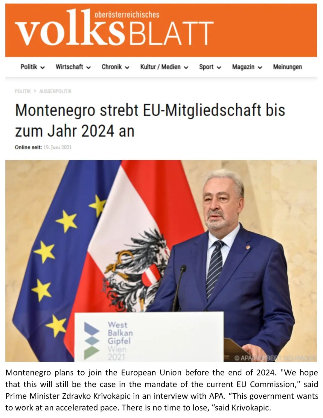 黑山总理Zdravko Krivokapić指出,“黑山的目标是到 2024 年加入欧盟,我们希望在现任欧盟委员会的职责范围内实现这个目标。黑山政府将加快速度,没有时间可以浪费了。”他还强调,黑山与西巴尔干地区所有国家都保持着良好的睦邻关系,没有领土争端,在民主改革上,黑山是其他国家的榜样。这将是黑山完成入盟改革进程的最大助力。