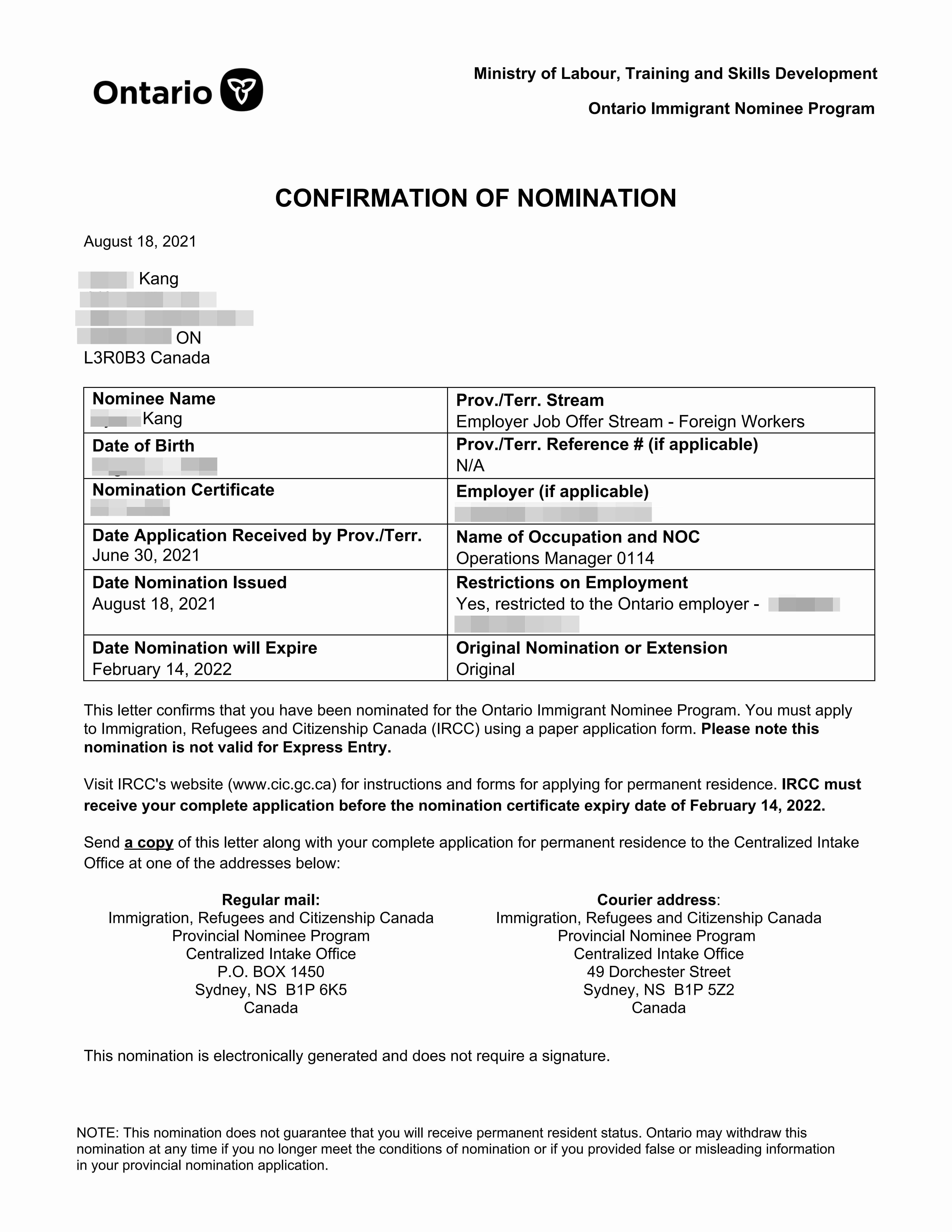 特殊案例分享∣世贸通安省雇主担保客户获批省提名