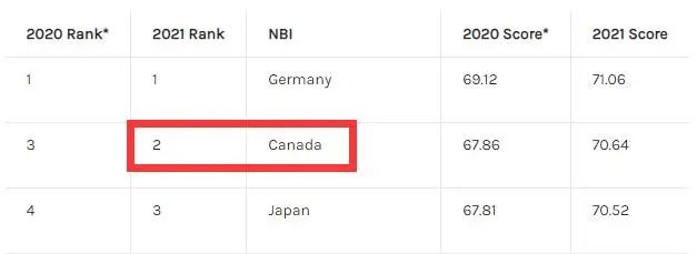 2021全球最佳国家品牌指数排名:加拿大排第二