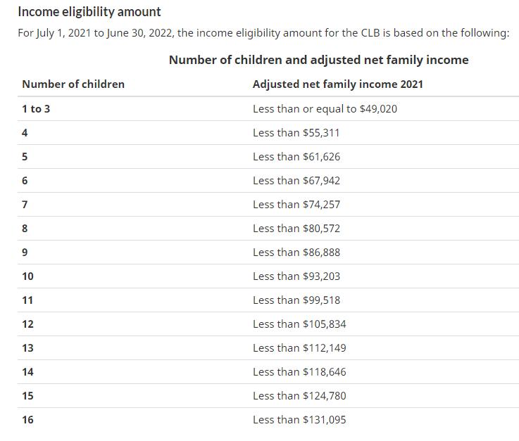 4、孩子必须来自低收入家庭,意味着家庭年净收入低于49,020加元。这一基准数字在每年会有所不同。孩子数量不同,这个数字也不同。