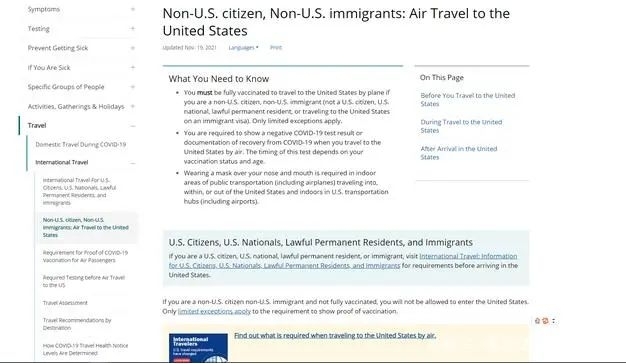 近日,美国疾病防控中心官网又更新了针对国际旅客进入美国的最新要求和政策,这也是目前很多已经获得美国签证的人士最关注的问题,否则即使拿到签证,到了美国的海关也可能会被遣返回国。以下这几点必须注意: