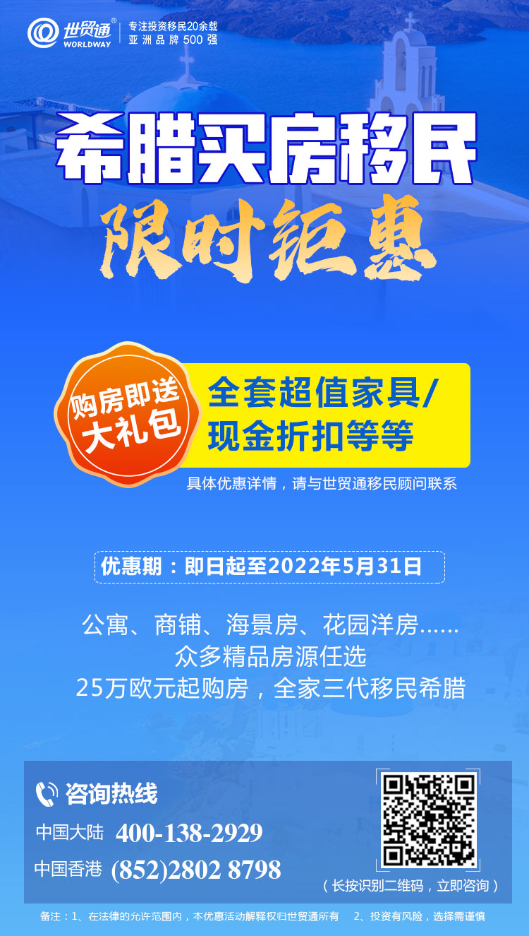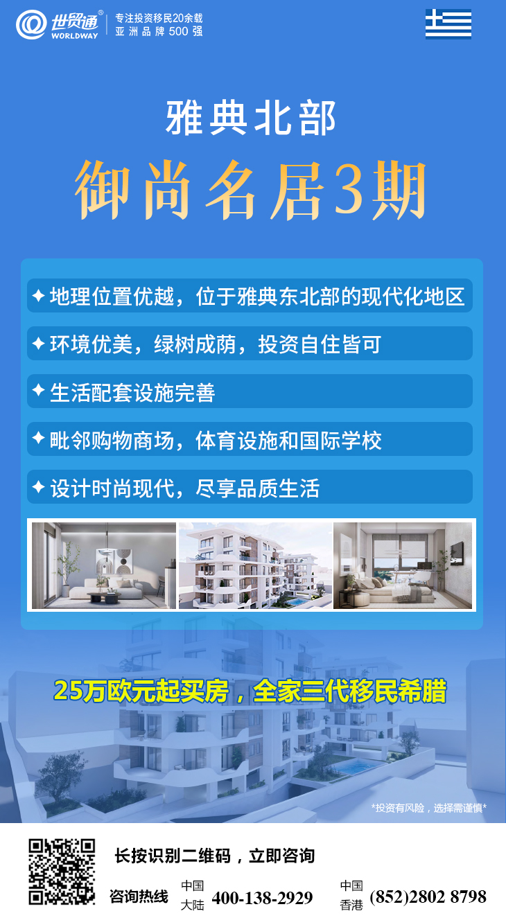亚洲品牌500强世贸通集团,作为较早将希腊置业移民项目引入中国的移民机构,再次携手希腊实力开发商隆重向投资者推介又一重磅希腊买房移民项目——爱琴海家园25期,出租自住两相宜。