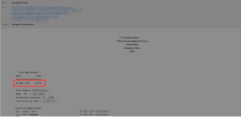 通知要求她于2022年5月16日早上8:50,到美国驻广州总领馆进行面试。S女士是一位上海客户,当时上海正处于全域静态管理中,那么,5月16日之前能否顺利到广州体检并参加面试呢?S女士为此忧心忡忡,世贸通客服团队一方面不断安抚S女士,一方面积极搜集各方讯息并制定策略,为即将到来的面签做好充分的准备。