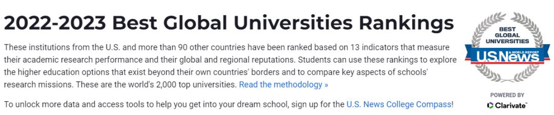 U.S. News世界大学排名Top100院校