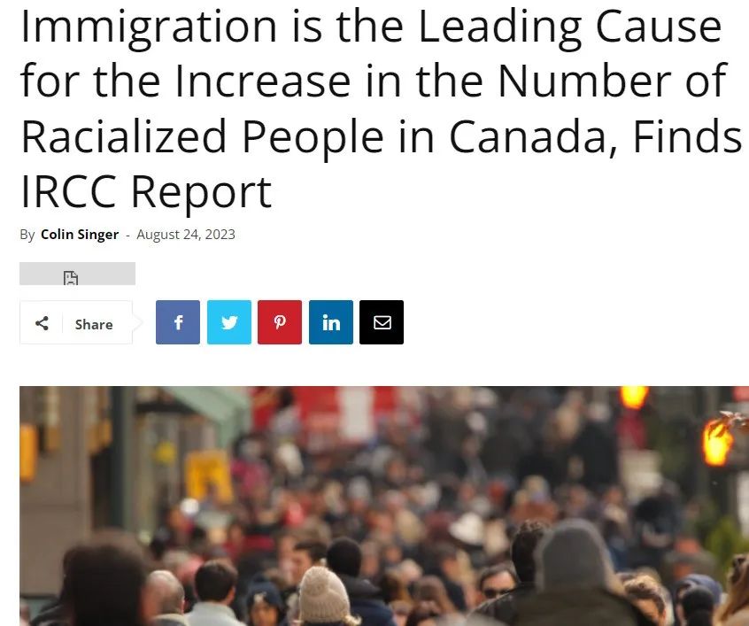 近日,加拿大移民部发布报告称,利用人口普查数据得出结论,2001年至2021年间,加拿大的种族化人口总数增加了130%,主要原因是新移民。