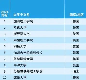 此次排名中,美国高校表现十分抢眼。从数据中可以看出,美国的大学包揽了艺术与人文、商业与经济、教育学、工学、法学、生命科学、理学、心理学和社会科学,共9个学科的第一名。其中,哈佛大学和斯坦福大学位列第一的学科最多:哈佛大学在工学、法学和生命科学位列第一;斯坦福大学在艺术与人文、心理学位列第一;麻省理工学院在商业与经济学位列第一,在社会科学领域并列第一。