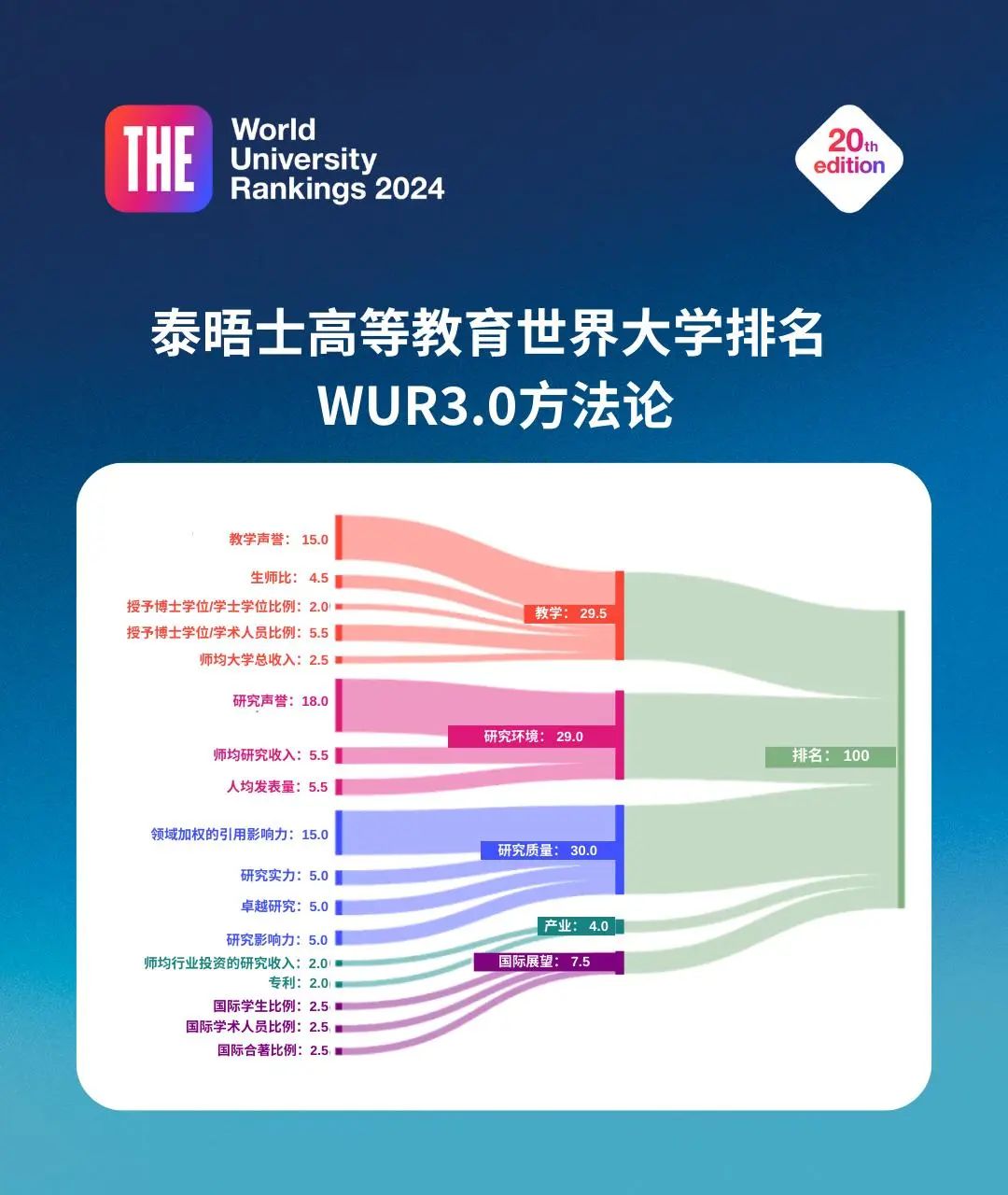 2024年泰晤士高等教育世界学科排名表采用18项表现指标,分为5大一级指标:教学、研究质量、研究环境、国际展望与产业。整体方法论针对每个学科都进行了仔细的重新校准,并更改了权重以适应各个学科领域。特别是对研究指标进行了更改,以更贴近每个学科的研究。