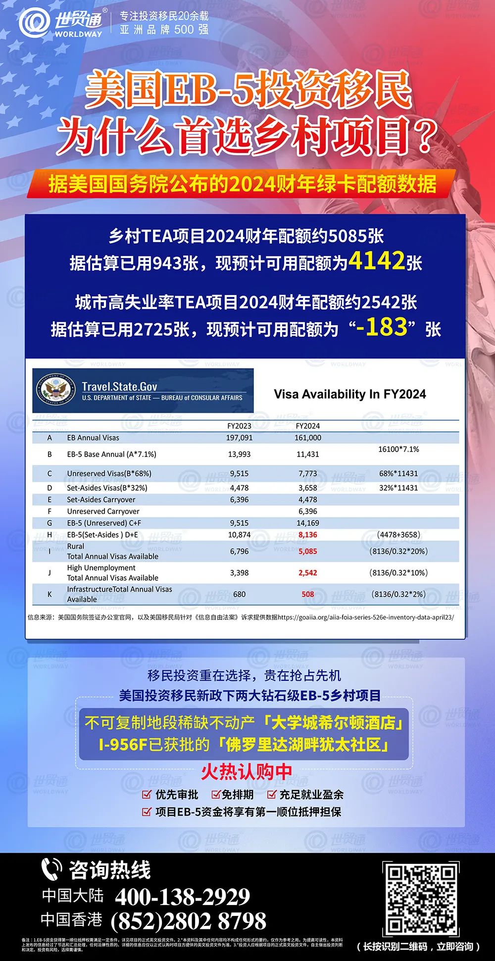 2024财年EB-5签证配额公布